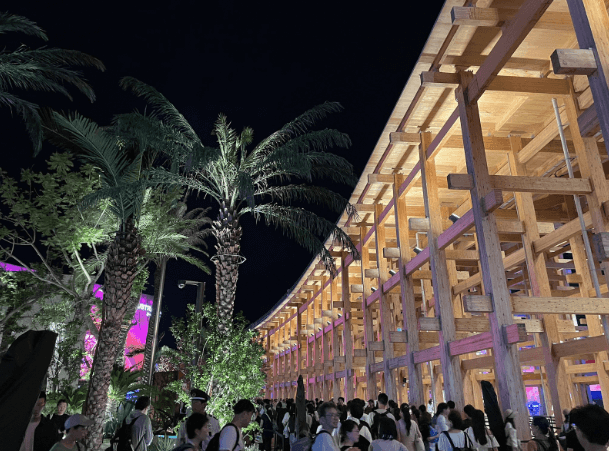 世界最大の木造建築物「大屋根リング」を抜けると、そこには海外パビリオンが無数に立ち並んでおり、パビリオンを見るだけで異国情緒感を味わえる。