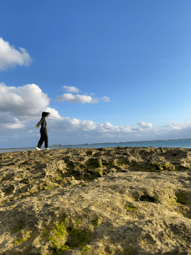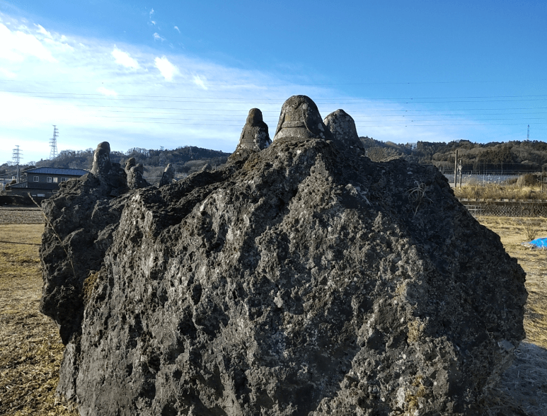 5分ほど歩いただろうか。ご当地ラジオでもつけようかとイヤホンを取り出した時、左手に予想より早く、家の塀ほどの高さの岩が現れた。その黒い岩は雑草の生えたなにもない土地に佇んでいた。
